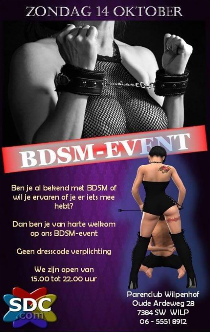 14 oktober BDSM event in Parenclub Wilpenhof