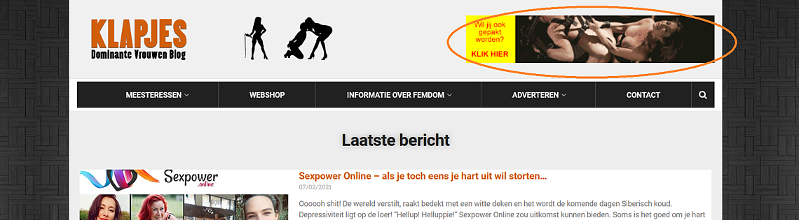 If you have Femdom related news, please send it to info@klapjes.nl and your message will get on klapjes. Mistresses with a paid banner have priority. This is free and an ideal way to get your message out in the Femdom community. Every posting also appears upon our twitter account: https://twitter.com/klapjes (And our network with more then 70.000 followers.)