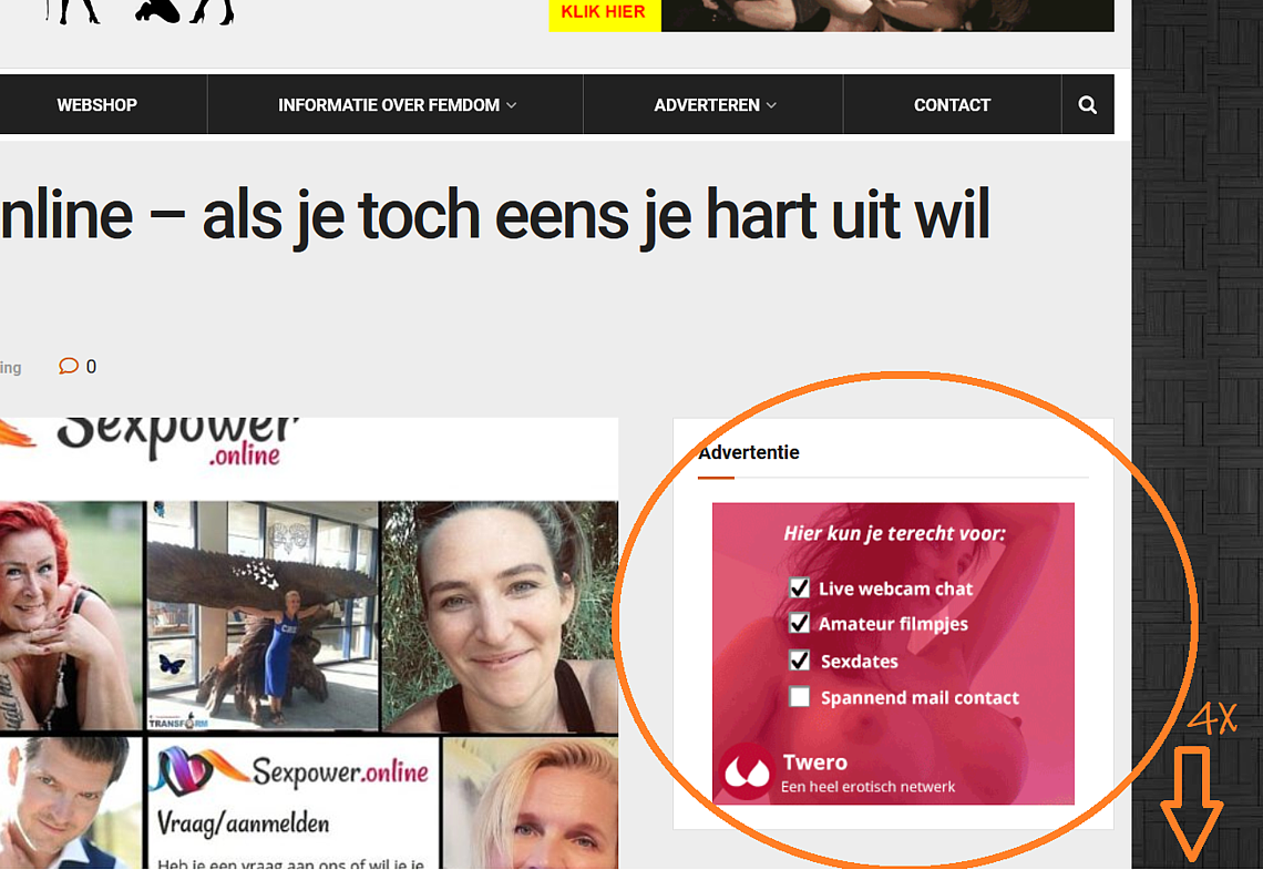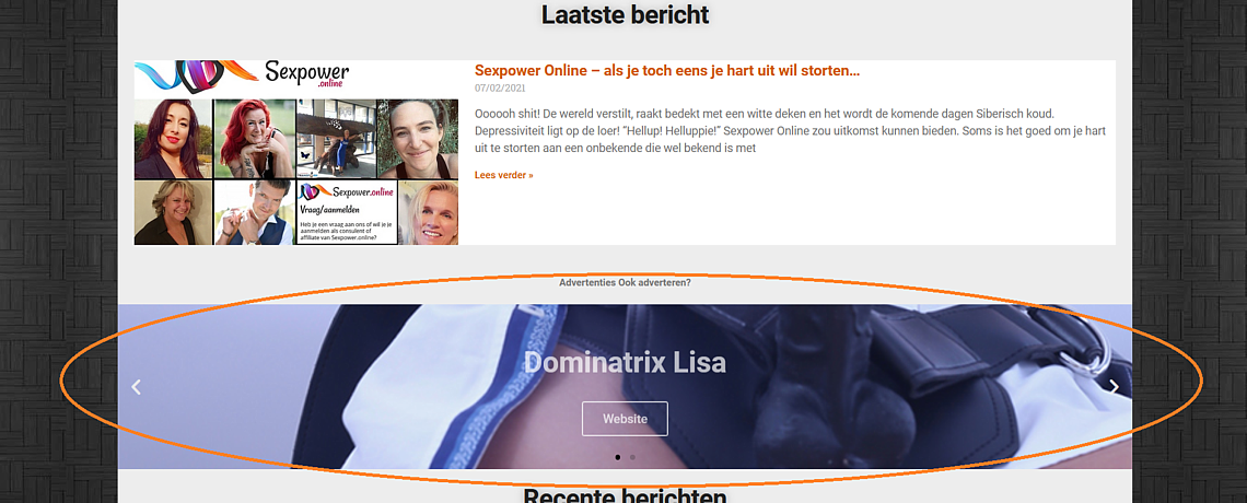 Hebt u nieuws dat op de een of andere manier heeft te maken met vrouwelijke dominantie, dan kunt u uw nieuws inzenden. De locatie van uw bericht vindt u op de printscreens hierbeneden. LET WEL; Meesteressen met een betaalde banner krijgen altijd voorrang. Inzenders die iets speciaals aan onze bezoekers aanbieden EN/OF hun nieuws of nieuwtje op een png- of jpg-plaatje van 1.140 pix breed aanleveren, die staan ook vooraan in de rij. Zie hier een voorbeeld.
