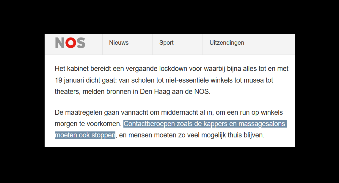 Nee hè, gaan we weer! Studio’s en clubs worden niet genoemd in de uitgelekte verscherpte lockdownplannen, maar massagesalons wel. Nou, dan weet je het wel.