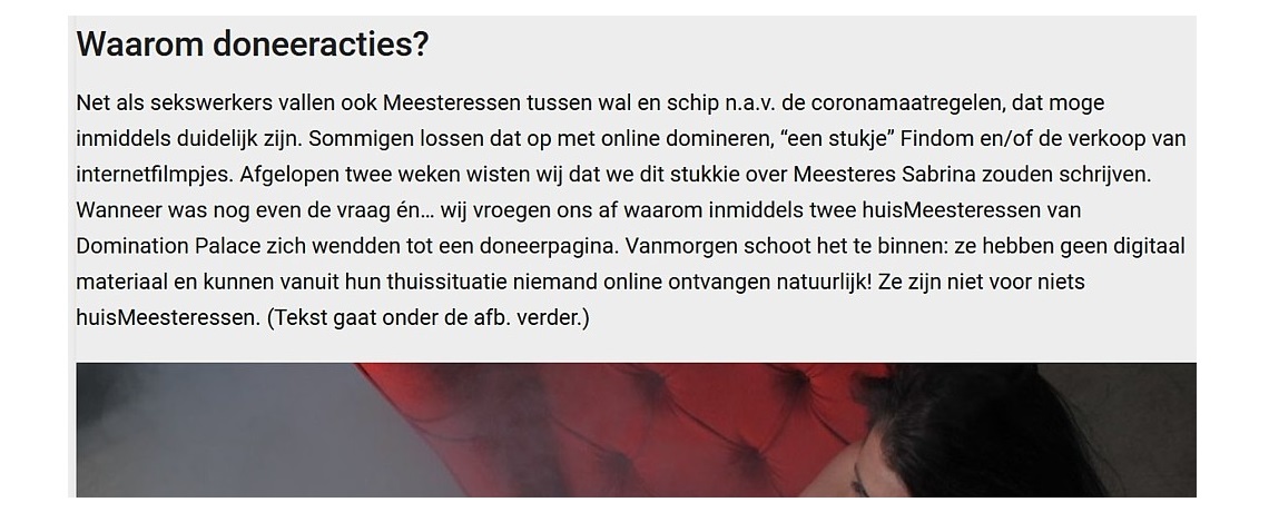 Mocht je je afvragen waarom inmiddels drie personen uit één pijn- en lustcentrum zich tot donatiepagina’s hebben gewend, hier onze “analyse” uit het artikel over Meesteres Sabrina.