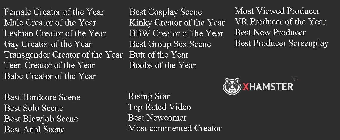 Jij dacht zeker dat je volgende week moest stemmen? Dan kan nu al! The best of-jaarverkiezingen zijn vol aan de gang bij een van de populairste adultvideosites ter wwwereld: xHamster. Maar let op! Morgen is de laatste dag!