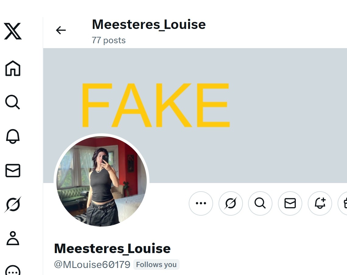 Let op! Meesteres Louise uit Amsterdam bestaat niet. Hier direct onder zie je het oorspronkelijk bericht. De linken naar de faker hebben we inactief gemaakt en de foto’s verwijderd. De echte foto’s zijn namelijk van ene Mevrouw Cat Gold uit de VS: https://x.com/CatGold_
