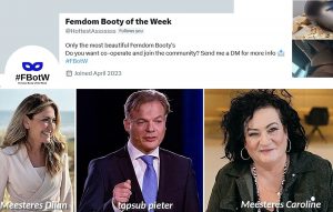 Ja, kiest u maar… De mooiste “Meesteressenkontjes” van week tot week via de Nederlandstalige X’eraar/Twitteraar Femdom Booty of the Week of… de gedroomde Nederlandse regeringscoalitie