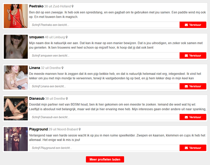 Klapjesflirt.nl is gemaakt voor mannen en vrouwen die op zoek zijn naar bdsm, kinky seks, extreme seks of naar een bepaalde fetish. Je kunt gratis een profiel aanmaken, je foto’s plaatsen, berichten versturen en op basis van je profiel een spannend contact zoeken. Meld je direct aan bij Klapjesflirt en wellicht heb jij vanavond nog een spannende avond.